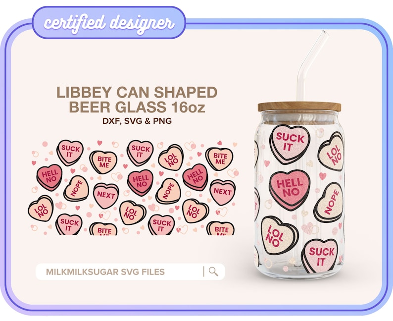 Candy Hearts Conversation Hearts Svg, Conversation Hearts Svg, Libbey 16oz Beer Can Glass Svg Cut Wrap File, Svg Wrap Files For Cricut