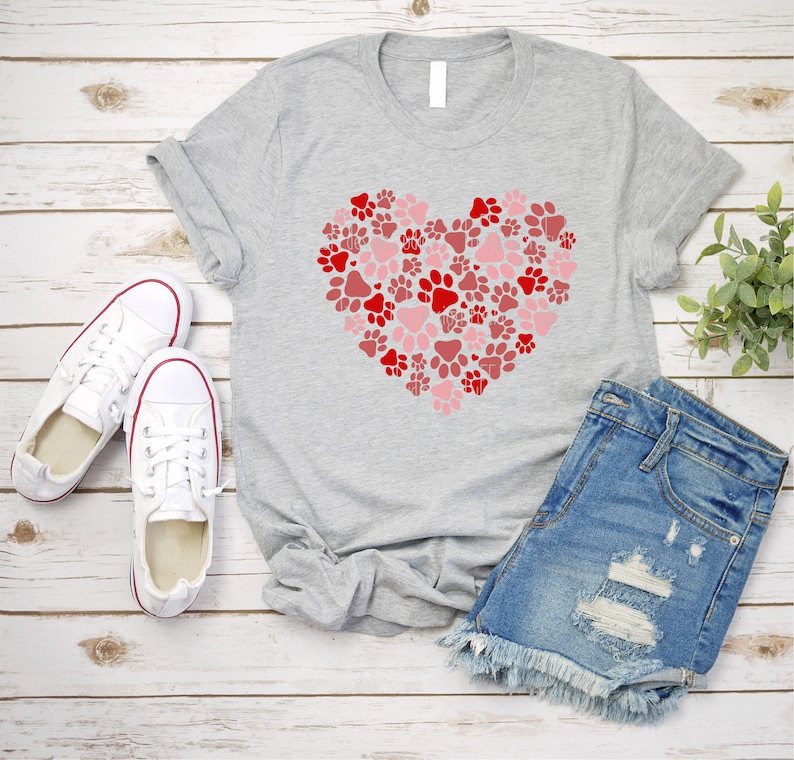 Dog Paws Heart SVG, Heart SVG, Dog Lover Valentines Day SVG, Heart PNG, Dog Mom Svg, Dxf, Svg Files For Cricut